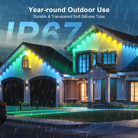 150FT Permanent Outdoor RGB Lights - IP65 Waterproof with Smart App Control Remote, DIY Scene Modes, Music Synchronization, Eaves Lights For Garden Decor, Deck, Christmas, Party, Party, Halloween,Roof