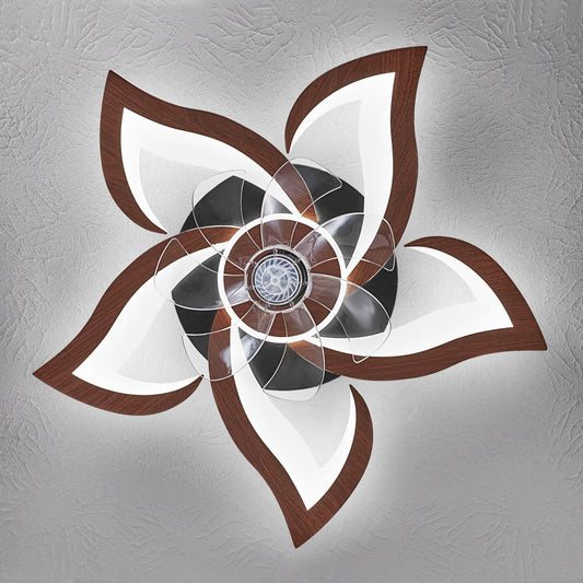 HuixuTe 24" Wood Geometric Ceiling Fan with Lights Remote Control, Low Profile Ceiling Fan with Light for Kitchen Bedroom Living Room