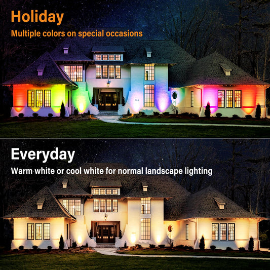 Halloween Christmas Spotlight Outdoor: 10W RGBW LED Landscape Lights Spot Lights Outdoor for Yard Garden Decor Spotlight, Landscape Lighting with 16 Color Changing and Remote IP68 Waterproof (8)