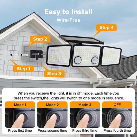 UME Solar Outdoor Lights 3000 Lumen 7000K, 152 LED Super Bright Motion Sensor Outdoor Lights with 2 Sensors, IP65 Waterproof 270 Wide Angle Solar Flood Lights with 3 Modes for Garden - 6 Pack
