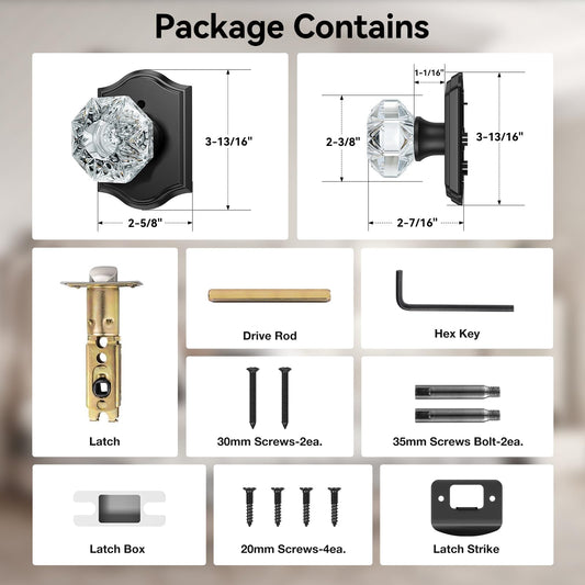 Calzibeno 3 Pack Glass Door Knobs, Black Crystal Door Knobs Interior with Lock for Privacy Use, Antique Octagonal Glass Doorknobs for Bedroom Bathroom Interior Doors
