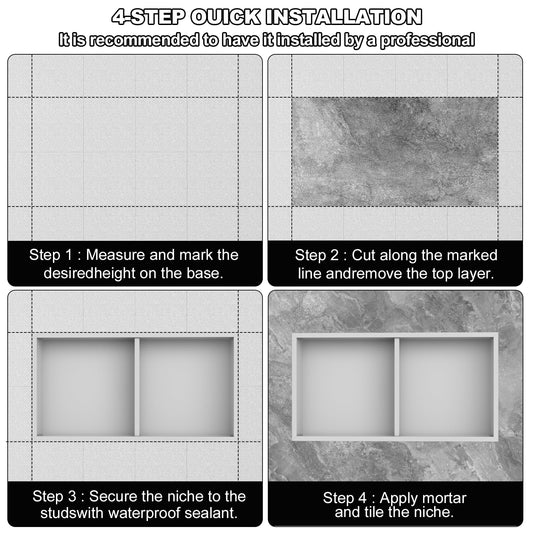 Real 304 Stainless Steel Shower Niche 12x24in-92° Quick Drain-No Tile Needed-2 Tier-Matte Recessed Wall Niche-Insert Shower Shelf-Built in Cabinet for Bathroom/Kitchen/Living Room/Study Storage