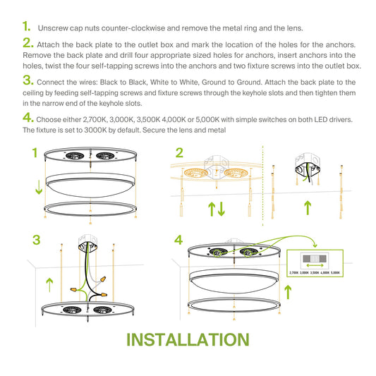 ASD LED 24 Inch Oval Flush Mount Light Fixture | 38W 3280LM 2700K-5000K 120V | 5CCT, Dimmable, ETL Listed | Close to Ceiling Double Ring Lamp, Low Profile Lighting | Nickel
