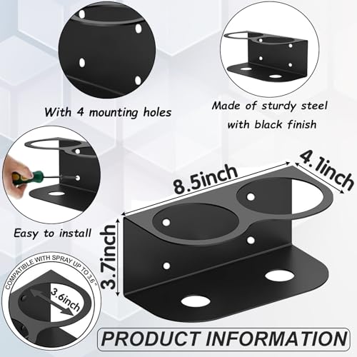 2 Pack Spray Bottle Holder Wall Mount, Metal Aerosol Spray Can Holder Rack Organizer with Double Holes, Heavy Duty Paint Bottle Can Storage Rack with Hardware Easy Install for Garage Home Workspace