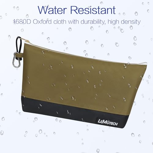 LeMotech Zipper Tool Bag with Carabiners, Water Resistant Stand-Up Utility Pouch Heavy Duty 1680D Oxford, Multipurpose Storage Pouch, 9 Pack