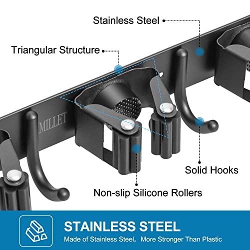 IMILLET 2 Pack Broom and Mop Holder Wall Mounted, Broom Holder Stainless Steel Broom Organizer Heavy Duty Tools Organizer Self Adhesive for Laundry Room Garage Garden£¨5 Racks and 4 Hooks£©