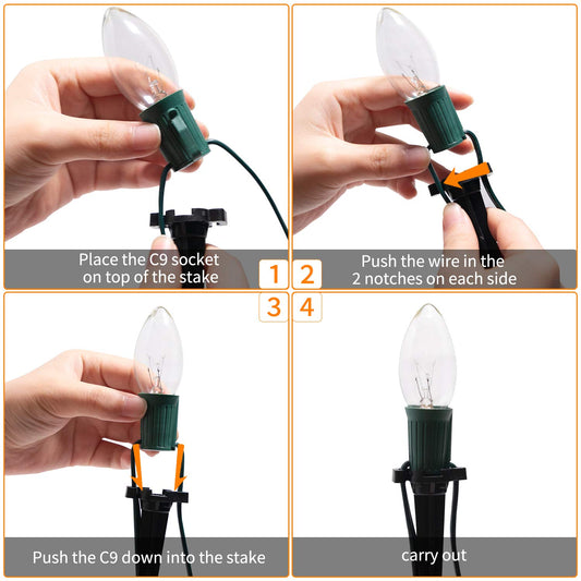 Brightown 4 Pack C9 Christmas Pathway Lights Outdoor - Total 102.8 FT C9 Walkway Lights with 80 Clear Bulbs, Connectable Christmas Light Outdoor Decoration for Lawn Holiday, Warm White