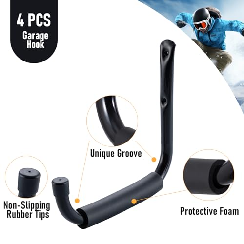HOME MASTER HARDWARE Heavy Duty 9" Jumbo Arm Garage Wall Hooks 4 Pack ? 50Lbs Ladder Hangers, Wall Mount Utility Storage for Bikes, Folding Chairs, Kayaks & Bulk Items
