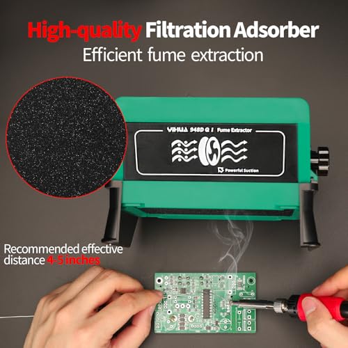 YIHUA 948DQ-I Solder Fume Extractor Fan Solder Smoke Absorber Remover Tiltable Angle with 8 Extra Fan Filters for Soldering Wood Burning and more