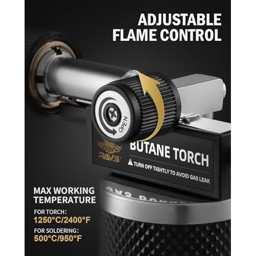 Butane Torch,Professional Metal Micro Torch, Waterproof and Windproof Blow Torch, Refillable & Adjustable Torch Lighter for Baking, Cooking, Welding (Butane Gas not Included)