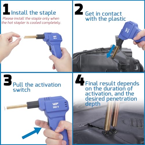 WEP 960-V Plastic Welder Kit 110V with LED Lights with 200 Hot Staples and Pliers for Car Bumper Plastic Welding, Plastic Gas Tank Repair, a Great Automotive Tools for Mechanics