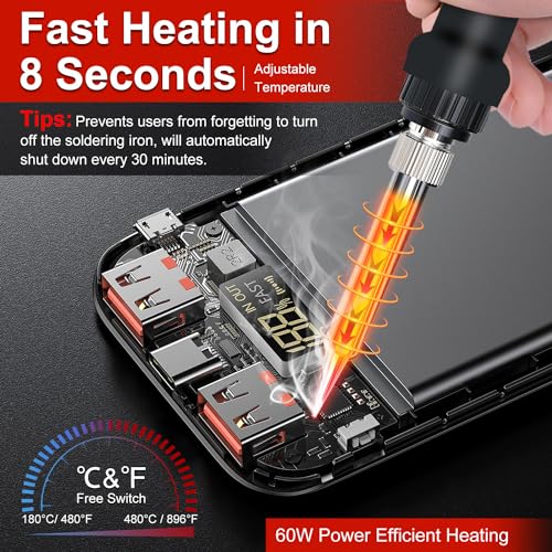 Soldering Iron Kit, 60W Upgraded Soldering Kits Adjustable Temperature Welding Tool Solder Irons Pen with On/Off Switch Use for Electrical Repairs
