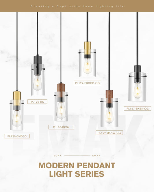 Emak 2 Pack Black and Gold Pendant Light,Modern 5 Inch Pendant Lights Kitchen Island with Clear Glass Shade, Farmhouse Kitchen Island Lighting for Dining Room, Bathroom, PL127-BKBGD-CG-2PK