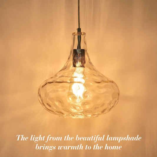 KOKAiZeeKi Farmhouse Vintage Glass Pendant Light with Handblown Hammered Shade - Adjustable Hanging Cord for Kitchen Island, Dining Room, Hallway - 11 Inch Chrome Ceiling Fixture