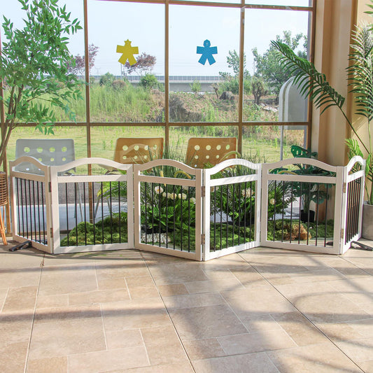 ZJSF Freestanding Foldable Dog Gate Indoor, Pet Gate for Doorways, Dog Fence for The House, Sturdy Wood Puppy Gate for Stairs, White Pet Gate with Support Feet for Hallways, 24 "Height-6 Panels