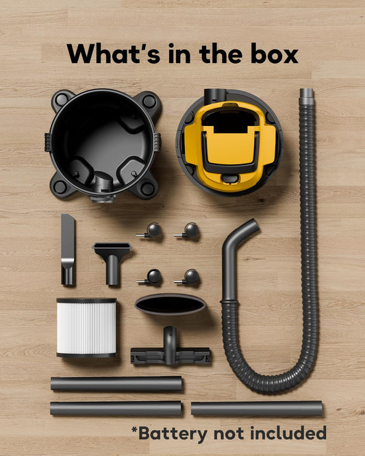 DeForce Cordless Shop Wet Dry Vacuums for DeWalt 20V Max Battery, 5.2-Gallon Portable Shop Vac, 17000Pa with Hose Nozzles HEPA Filters Wheels for Home Projects & Renovations, Mustard(No Battery)