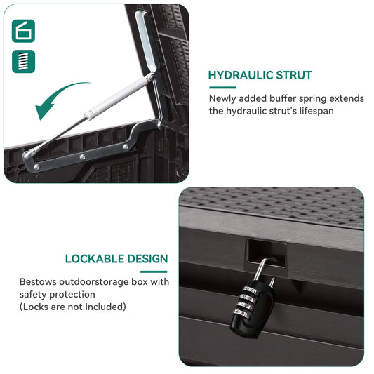 YITAHOME 100 Gallon Large Deck Box, Outdoor Resin Storage Boxes for Patio Furniture, Outdoor Cushions, Garden Tools, Water Resistant and Lockable
