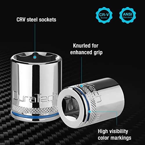 DURATECH 1/4" Drive Socket Set, Metric Socket Set 10PCS, Mechanic Metric Socket Sets with Storage Rack, 6-Point Shallow Socket Set, 4mm, 5mm, 6mm, 7mm, 8mm, 9mm, 10mm, 11mm, 12mm, 13mm