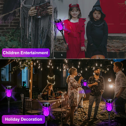 Tancuzo Solar Lights Outdoor, Upgraded 12 Pack Purple Solar Torch Light with Flickering Flame Waterproof for Garden Decor, Flame Torches for Outside Landscape Porch Yard Pathway Decorations