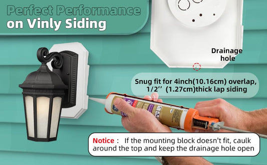 Vinyl Siding Mounting Blocks , Ease of Installation Built-in Electrical Box Outdoor Light Mounting Block, 8141DBL Siding Mounting Plate for 1/2 inch Lap Double and 4 inch Siding, White 1 Pack
