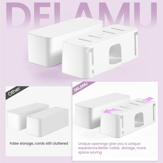 Delamu 2 Pack Cable Management Box, Stylish Cable Box with Cord Organizer for Desk, Pet & Child-Proof Cord Hider and Power Strip Protector, Ideal for Home & Office, Durable Cable Organizer Box