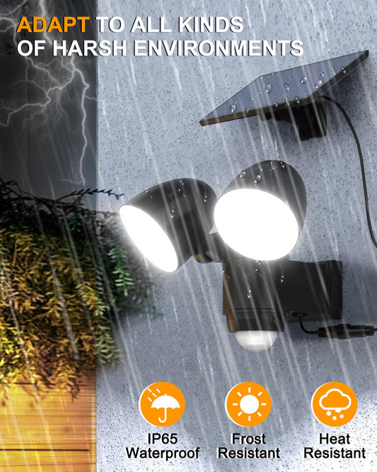 HAARAY Solar Security Light with 16.4Ft Cable, Super Bright Motion Sensor Outdoor Lights, Adjustable 2-Head Flood Light for Pathway, Backyard, Outage, Auto ON/Off, 7000K, IP65 Waterproof, 1 Pack