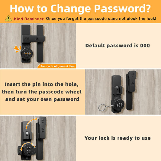 Barn Door Lock,180 Degree Flip Barn Door Locks and Gate Latches, Sliding/Bifold French Door Lock Latch for Gate Barn Garage Shed Window Cabinet Liquor 3-Digit Password Keyless,Black