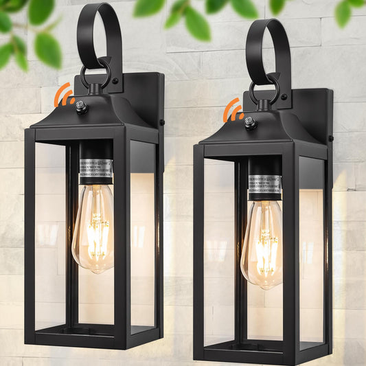 Yolsunes Dusk to Dawn Wall Lights 2 Pack, Black Outdoor Light Fixtures Wall Mount, 15 Inch Exterior Wall Sconces Waterproof, Large Outside Lights for House, Modern Wall Lanterns Clear Glass