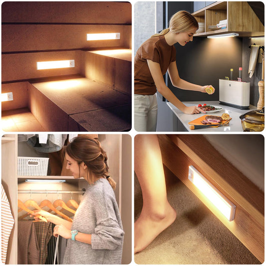 6 Pack Under Cabinet Lights Wireless, 50 LED Motion Sensor Light Indoor Rechargeable Magnetic Closet Lights Battery Operated, Under Counter Lights for Kitchen, Wardrobe, Stairs, Warm Light