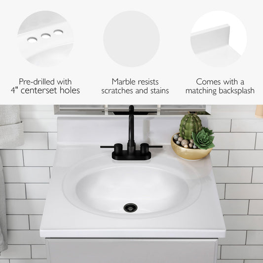 Design House 25 in Wide Vanity Top With Sink, 4 in Backsplash, Cultured Marble, Stain-Resistant, Pre-Drilled Centerset Holes, Solid White, 25 in W x 22 in D x 11.4 in H, 586222
