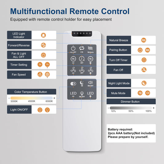 Ohniyou Ceiling Fan with Lights, 48" Flush Mount Ceiling Fan with Light and Remote, Low Profile, Silent DC Motor, Dimmable for Bedroom Living Room, White