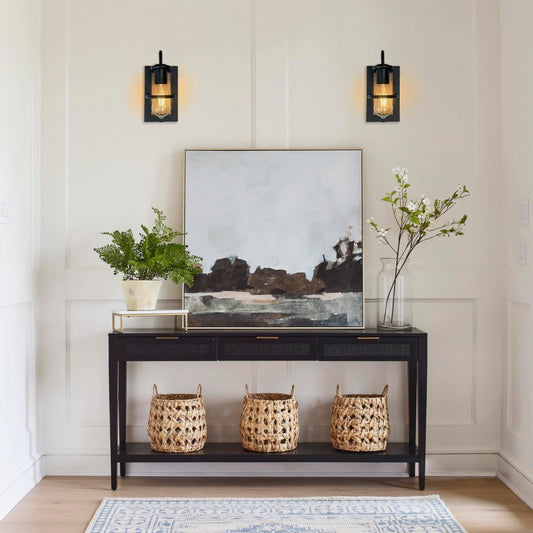 ThyFenno Vintage Battery Operated Wall Lights with Faux-Wood Finish, Dimmable Wall Lamp No Wiring Easy to Install, Cordless Rechargeable Wall Sconce for Farmhouse Living Room Bedroom Hallway