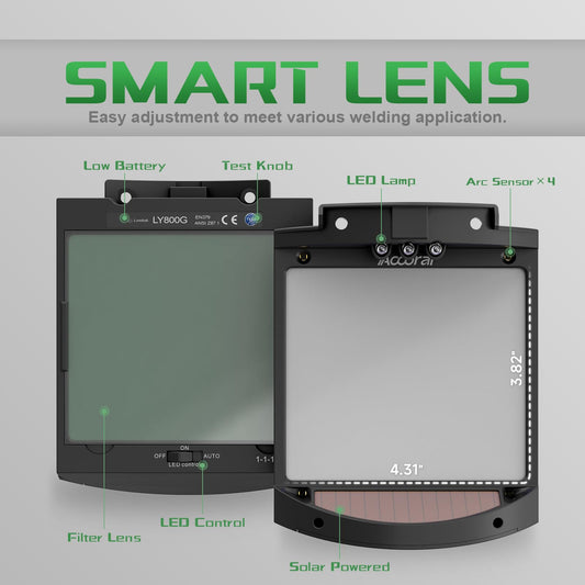 Accoral Panoramic View Auto Darkening Welding Helmet with Light,1/1/1/1 True Color Solar Powered Welding Hood Mask,4 Arc Sensor Wide Shade for TIG MIG ARC Cut,Grinding