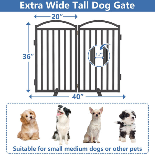 Malier Metal Freestanding Dog Gates with Door, 36'' Height Outdoor Indoor Dog Fences, Extra Wide Foldable Puppy Gate for Stairs (Black, 【2 Panels】 40''W × 36''H)