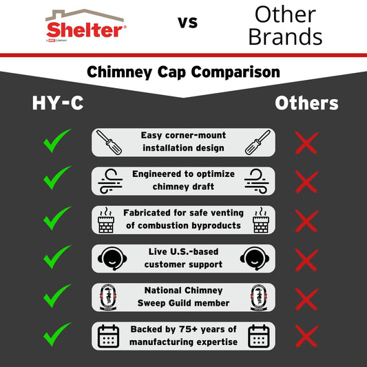Shelter 13" x 13" Single Flue Bolt-On Chimney Cap, Fully Assembled, Stainless Steel