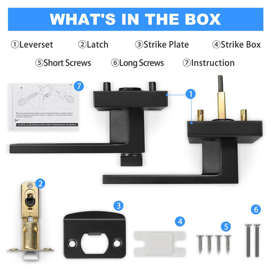 Onateel 6 Pack Modern Black Door Handles Privacy Door Levers Black Door Knobs Interior Reversible Door Locks Keyless Square Interior Door Handles