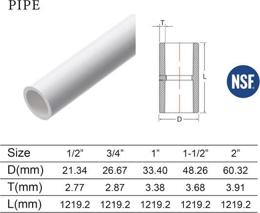 15PCS 3/4" White PVC Sch40 Pipes - 4FT Industrial Grade Durable Tubing