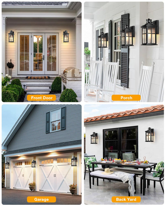 VIANIS Motion Sensor Porch Lights Outdoor, 2 Pack Black Exterior Lighting Fixtures for House, Waterproof Outdoor Wall Sconce Wall Mount, Modern Outside Wall Lantern with Dusk to Dawn for Garage, Patio
