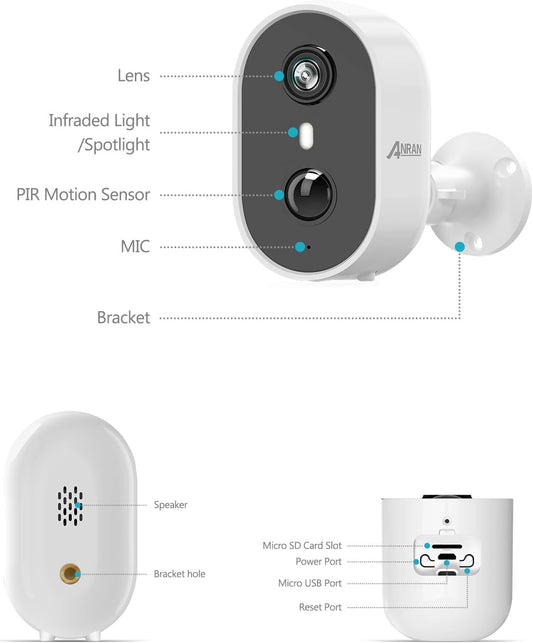 ANRAN Solar Security Cameras Wireless Outdoor for Home Security, 3MP 2K Color Night Vision WiFi Surveillance Home Camera with Solar Panel, Spotlight, PIR Detection, 2-Way Talk, 2 Packs