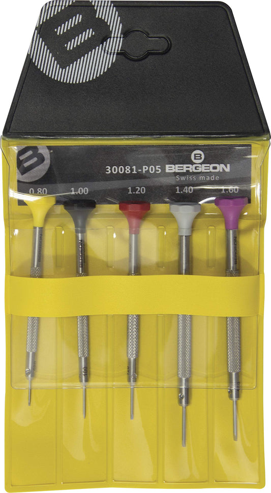 Bergeon 30081-P05 Stainless Steel Assortment of 5 Screwdrivers - Swiss Made
