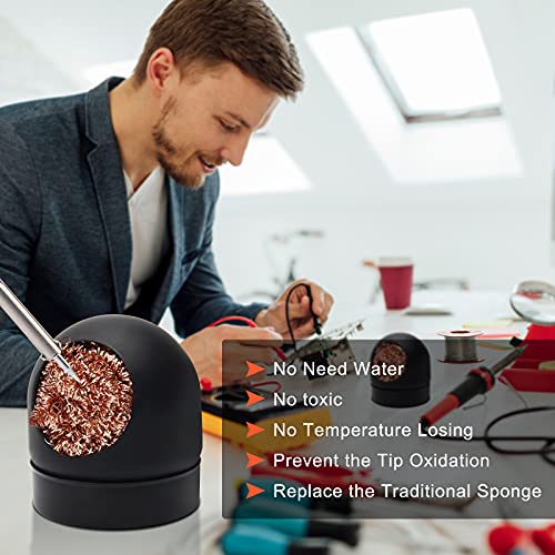Soldering Iron Tip Cleaner Non-Slip Solder Tip Cleaning Wire Ball & Base Holder Soft Coiled Brass Tip Cleaner Kit
