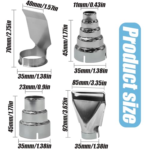 4Pcs Heat Gun Nozzles Kit, Heat Gun Accessories, Stainless Steel Reflector Nozzle, Hot Air Gun Soldering Station Nozzle Tool