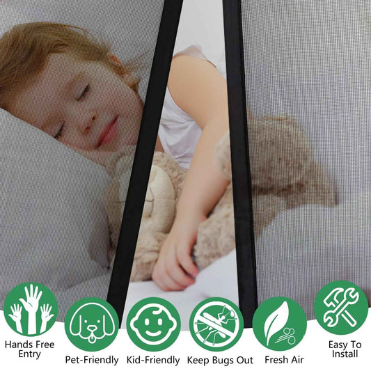 RELIANCER Fiberglass Magnetic Door Screen,Fit Doors Size 30"x78",Auto Close Screen Door Mesh w/Magnets,Left Right Side Opening,Patio Doorway Net Screens,Self-Closing Doors Cover,Doorway Curtain Mesh