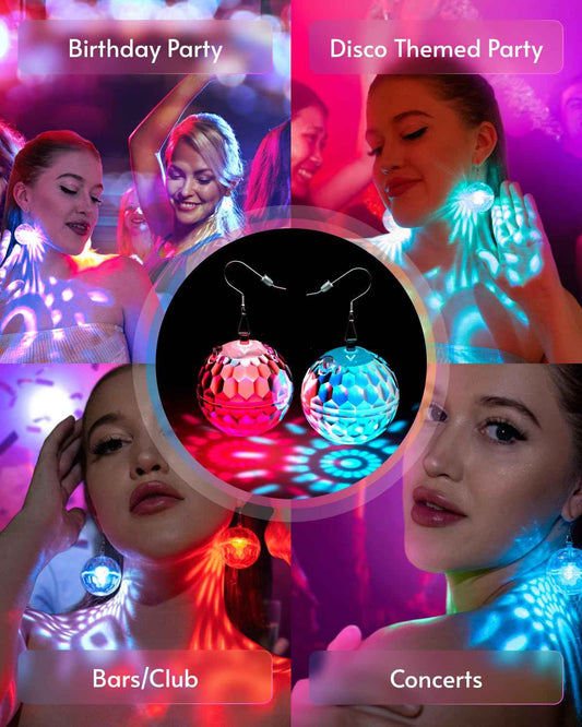 Light up Earrings Rhombic Disco Ball Earrings 16 Light Modes Rechargeable 60s 70s 80s Earrings for Women Concert, Disco Party, Rave Accessories