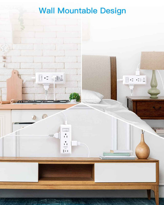 Extension Cord 10 ft, HANYCONY Flat Plug Power Strip with 6 Outlets and 3 USB Ports (2 USB C), Ultra-Thin Extension Cord, Wall Mountable, Long Cord for College Dorm Room, Office Home Essentials