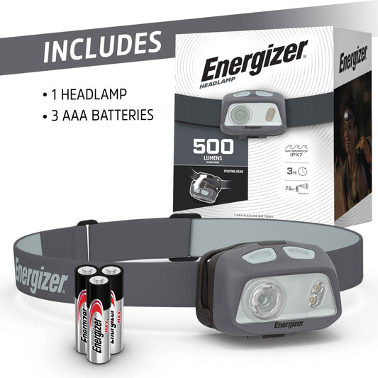 Energizer HDL40 LED Headlamp, 500 Lumen, IPX7 Waterproof, Multi-Colored Headlamp, Hands-Free Light, Batteries Included