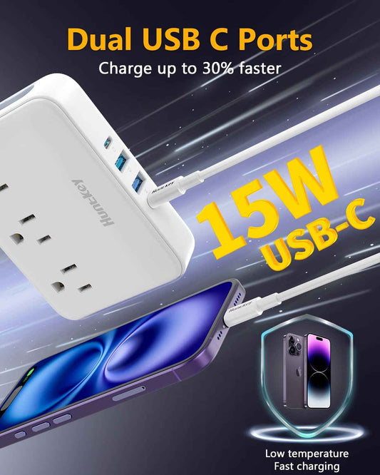 Innovative Power Strip, Cord Removable Design (4FT), Huntkey 3 Outlets Non Surge for Cruise, Travel Power Strip with 4 USB Ports (2 USB-C, 2 USB-A), ETL Listed