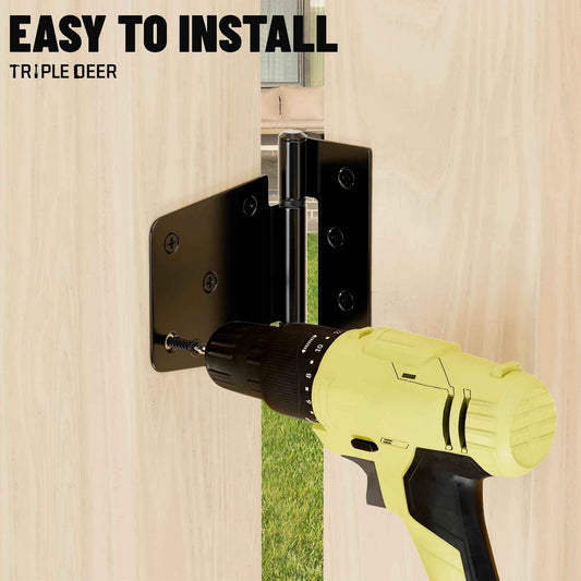 TRIPLE DEER 3.5 Inch Heavy Duty Gate Hinges, Extra Thick Gate Hinges for Wood Fence Barn Door Shed Gate Swing Door, Black Finish Door Strap Hinge, 4 Pack