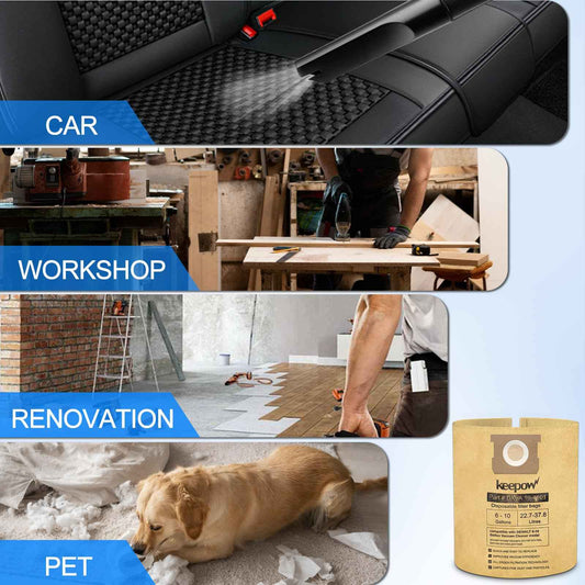 KEEPOW 10PCS DXVA19-4101 Shop Vac Bags for DEWALT 6-10 Gallon Wet/Dry Vacuum, Dust Collector Bags, Disposable Filter Bag for DEWALT Vacuums DXV06P DXV09P DXV09PA DXV10P DXV10PL DXV10S DXV10SA DXV10SB