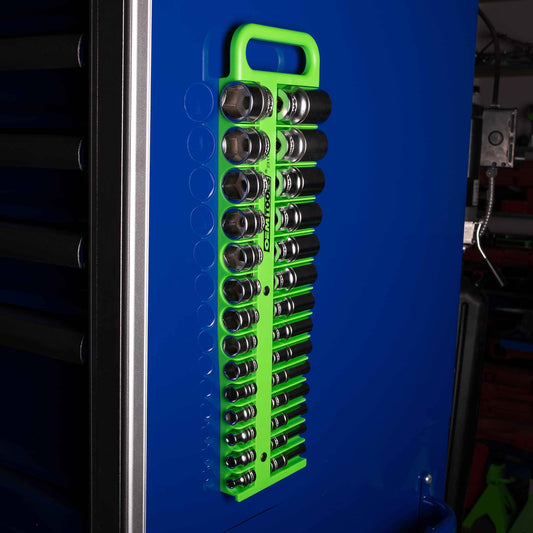OEMTOOLS 23117 3/8" Drive Portable Magnetic Socket Organizer Tray, Magnetic Socket Holders Organizers For Tool Box, Shop, Or Garage, Holds Up To 28 Tools, Metric/SAE, Green